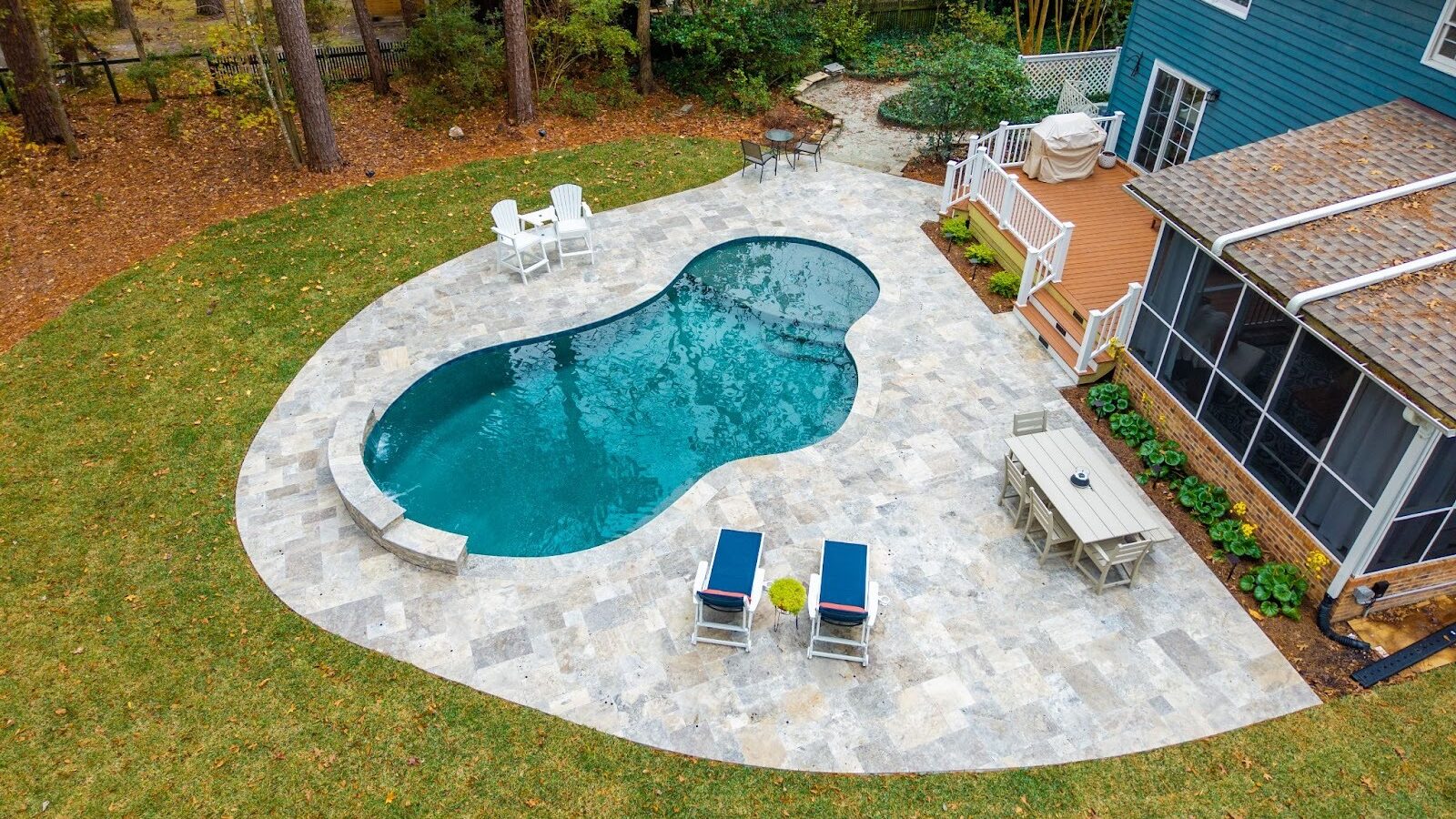 An aerial picture of a gunite pool