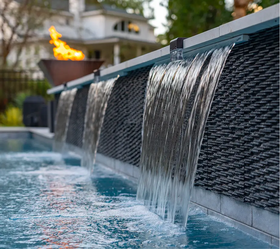 Custom pool features, pool accessories, and luxury spas: Find inspiration for your backyard pool here.
